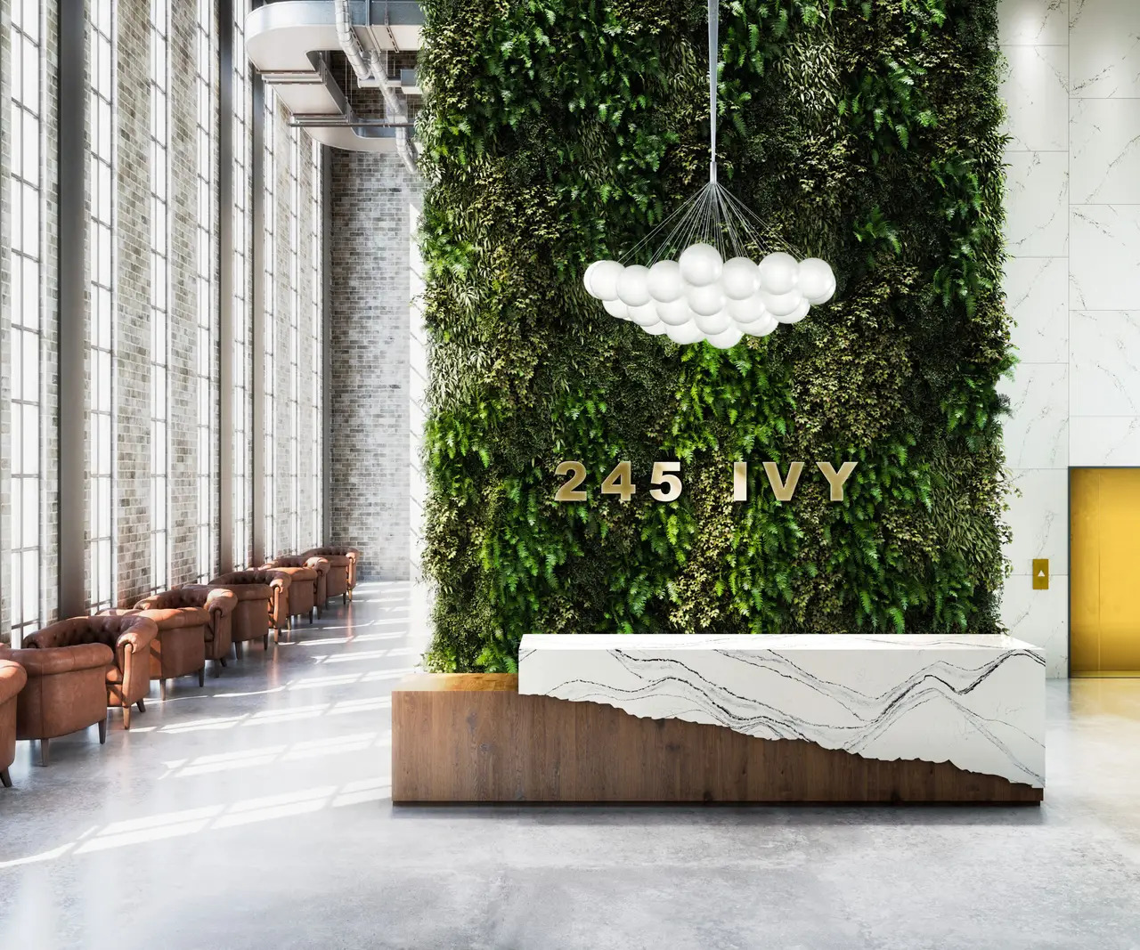Portrush features an elegant creamy white base crisscrossed with bold navy, gray, and black veins accompanied by finespun filaments and gleaming gold flakes.