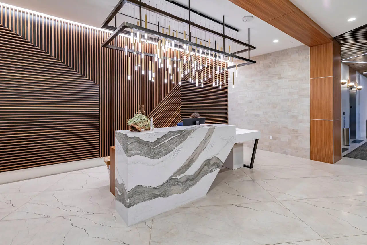 Set against a bone-white marbled backdrop, bold translucent olive green veins plunge in various directions with subtle white and black tributaries interspersed throughout.